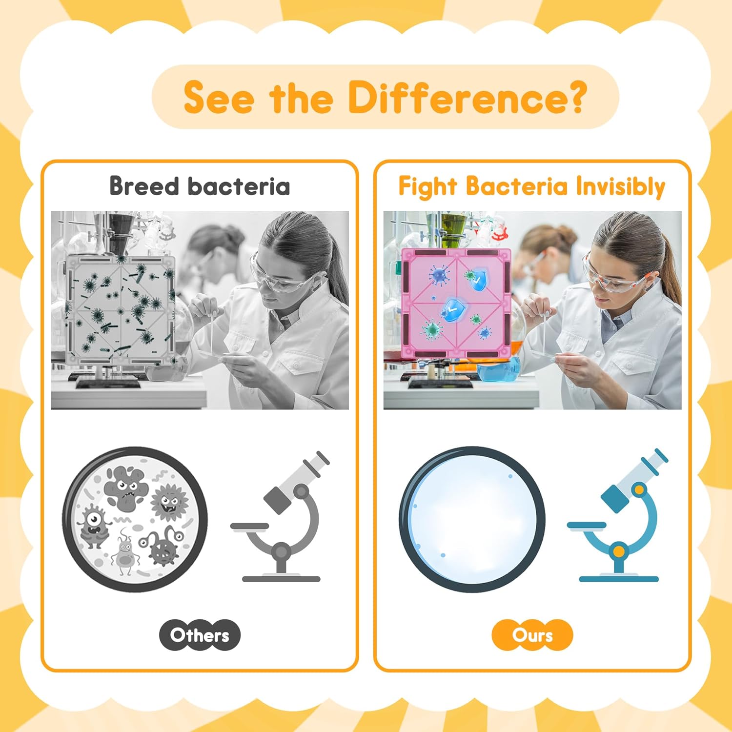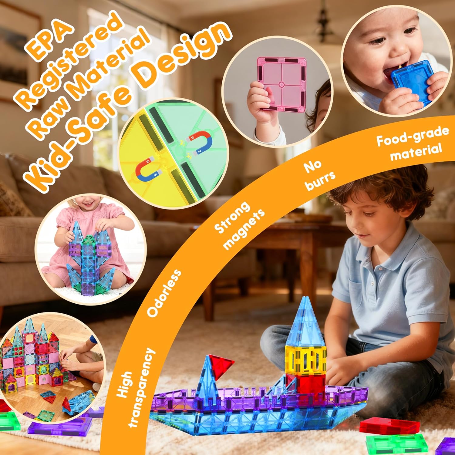 - Revolutionary Antibacterial Protection: HAPPYMATY magnet tiles are made with raw materials containing silver ions (Ag⁺) registered with the U.S. Environmental Protection Agency (EPA). The ions act as a natural antibacterial agent, effectively inhibiting bacterial growth on toy surfaces. We know toys often end up in little mouths, leading to bacteria entering their bodies. The antibacterial protection perfectly solves this problem, allowing your child to play healthier.